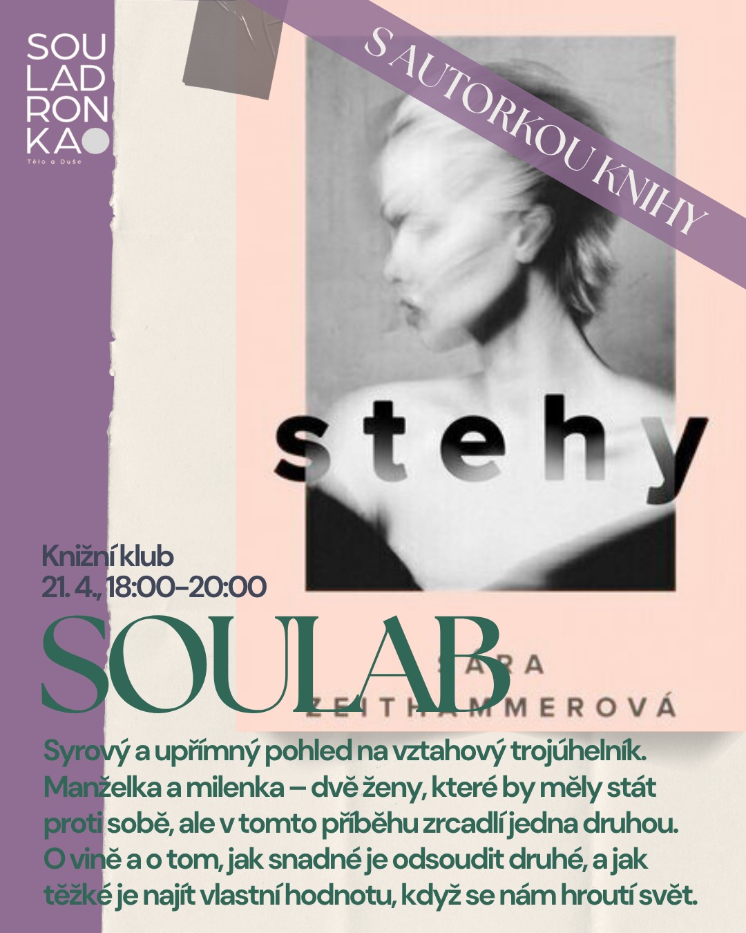 Bez ohledu na postavení nebo postavu, bez ohledu na věk či zkušenosti! Bez ohledu na pohybový talent nebo výkon! Jsme tu pro ženy takové, jaké jsou. Každá žena si u nás najde to, co jí vyhovuje, a co ji bude dělat šťastnou a spokojenou! Vždyť jde jen o to, najít to správné místo! Místo ve vašem diáři! A také místo, kde se můžete nadechnout, zpomalit, sdílet, inspirovat se, načerpat energii – být mezi ženami. Protože dokonalé místo na cvičení (a mnohem víc) jsme už pro vás našli my! Souladronka, Usedlost Ladronka, uprostřed zeleně a stejnojmenného parku!